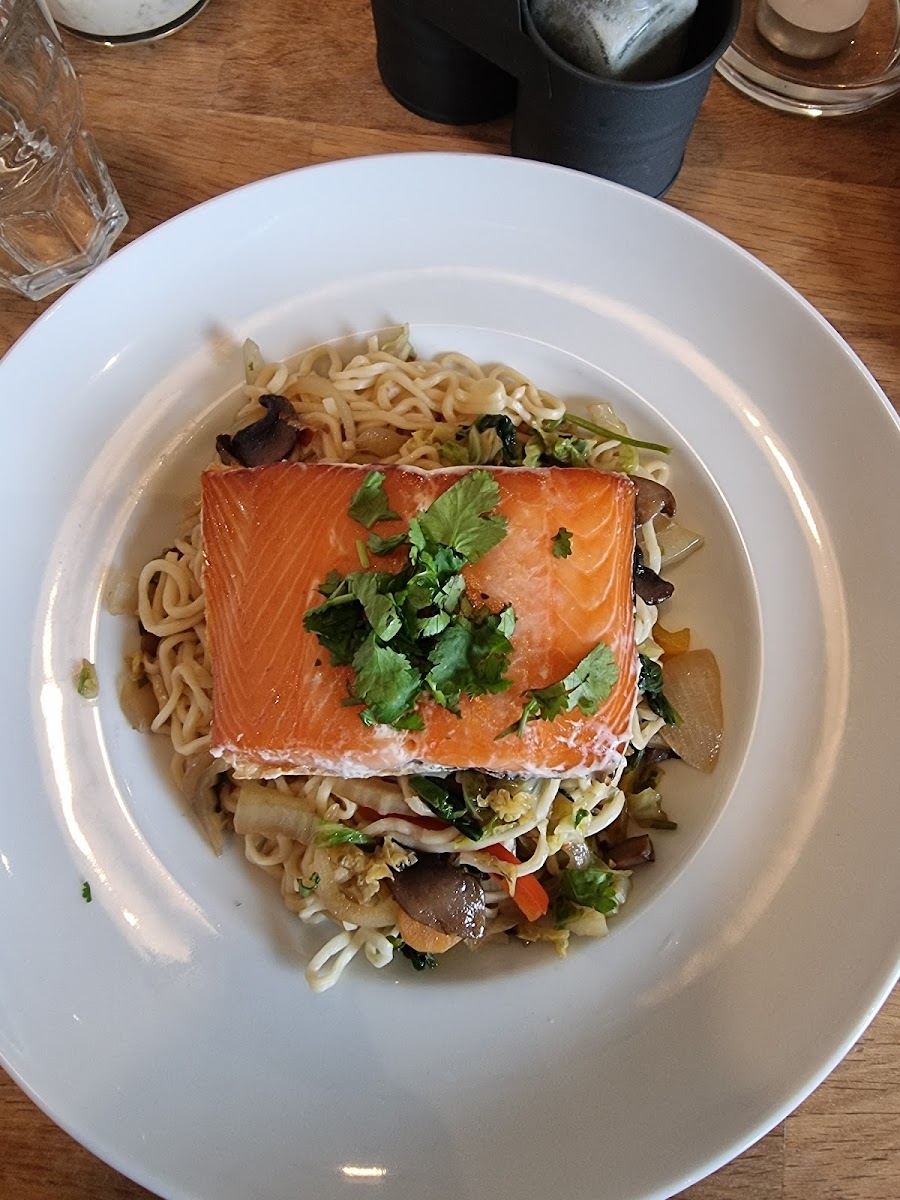 Another highlight from the kitchen is the Pavé de Saumon Fumé Chaud Nouilles Et Légumes Asiatique Sauté. This dish brings a slightly different twist to the brunch restaurant setting. The warm smoked salmon sits beautifully alongside sautéed Asian-style noodles and vegetables. The flavors balance nicely-rich salmon paired with fresh vegetables and savory noodles-creating a dish that feels hearty without being heavy. It’s the type of menu item that shows the kitchen’s willingness to blend comfort with creativity.